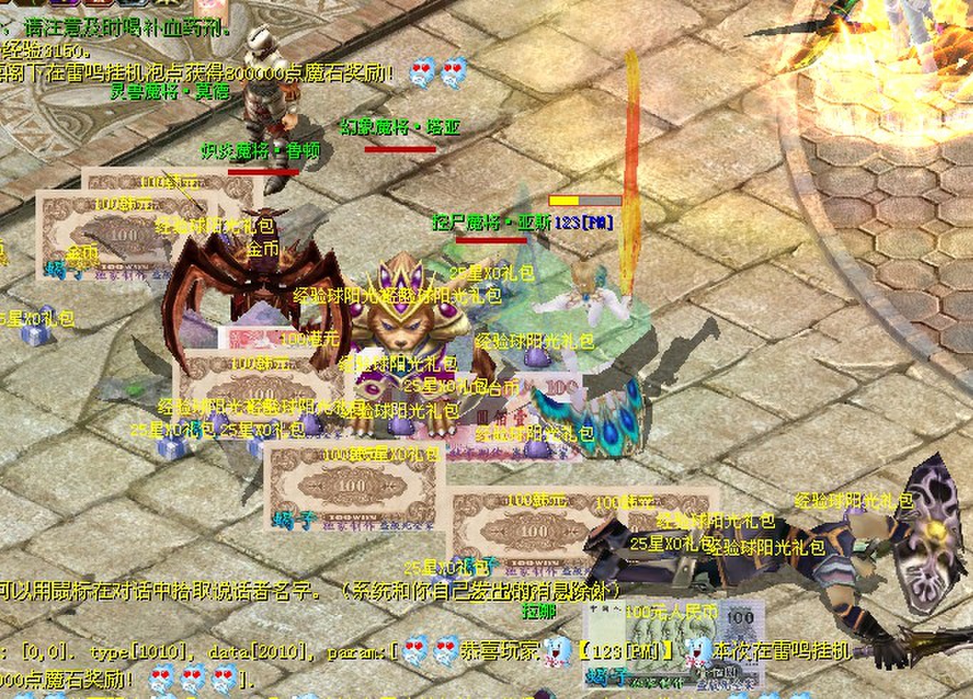 所有BOSS和蜘蛛皇后艾达随机入包百元大钞 刷新时间为20分钟